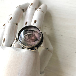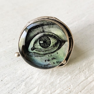 I've always loved the idea of having images, small pieces of art with you at all times, in the form of jewelry. It's something I've wanted to experiment with lately. In the past, I've made pendants using glass microscope slides and sandwiching images between then, then soldering the sides, as you would with stained glass. Some pieces I saw recently had beautiful vintage images in them underneath glass (or crystal?) faceted cabochons. I fell madly in love with them but wanted to create my own version. Having taken a few metal smithing courses, this would be my first choice of fabrication, but having the set up to do this would be obscenely expensive right now. Some day I'd love to, but for now these ring blanks do the job just perfectly!